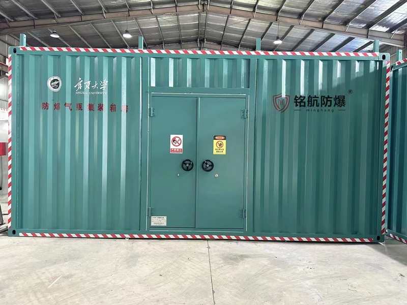 一般這些易燃易爆氣體都裝于防爆氣瓶中,集中置于防爆集裝箱內(nèi)。
